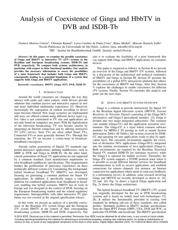In this paper, we examine the possible coexistence of Ginga and HbbTV as interactive TV (iTV) systems in the Brazilian and European broadcasting systems, ISDB-Tb and DVB, respectively. We compare both systems architectures, in particular with respect to their functional modules. Our analysis provides the necessary information to assess the possibilities of a joint framework that includes both Ginga and HbbTV, consequently leading to a potential foundation of a system that supports both Ginga and HbbTV applications.
