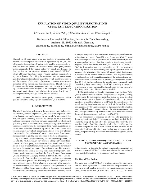 Fluctuations of video quality over time can have a significant influence on the overall perceived quality as represented by the QoE. Existing methodologies for subjective video quality assessment, however, are often not suitable for the evaluation of these quality fluctuations, especially if they occur within very small time frames. In this contribution, we therefore propose a new method, VIQPAC, which addresses this shortcoming by using a pattern categorisation approach. Instead of requiring the subjects to provide a continuous quality evaluation, the subjects assess the overall quality impression and the strength of the quality fluctuation, combined with a categorisation of the encountered fluctuation pattern. This allows us to determine the fluctuation dependent temporal changes in the quality. The results show that VIQPAC is able to capture the pattern and strength of quality fluctuations, allowing for a proper description of the temporal quality changes within a video sequence.