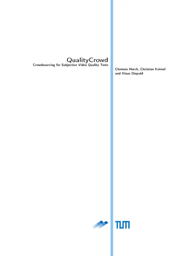 Despite continuing research on the development of better quality metrics, subjective tests are still indispensable for the assessment of video quality. These tests are both time-consuming and expensive and require installing a suitable laboratory that fulfills the corresponding ITU recommendations. In this thesis the use of crowdsourcing in conjunction with the internetbased performing of such tests shall be examined comparing the results of such a test and the results of conventional laboratory tests. For performing this test the web-based software QualityCrowd was developed, which allows the simple planning and conducting of subjective tests. The software uses Amazon’s crowdsourcing platform Mechanical Turk to assign the assessment of the videos to the crowd. Amazon provides the infrastructure for distibuting large numbers of almost any task and paying the workers afterwards. Another aspect is the evaluation of the technical issues that arise from an internet-based video test. In particular, the problems concerning the compression, delivery and playback of the videos in the participants’ browsers are discussed. After considering the various possibilities, a decision in favour of lossless compression using H.264/AVC and playback with Adobe’s Flash Player is taken. The gathered data show very high correlation with the data from the laboratories they are compared with. Although there are also some significant deviations, the results in general are quite promising and indicate the suitability of the use of crowdsourcing for subjective video tests. Even though the test could not be conducted publicly and the workers be paid, the costs of a test like this one are estimated. It shows that - compared to conventional laboratory tests - a clear cut in costs can be achieved.