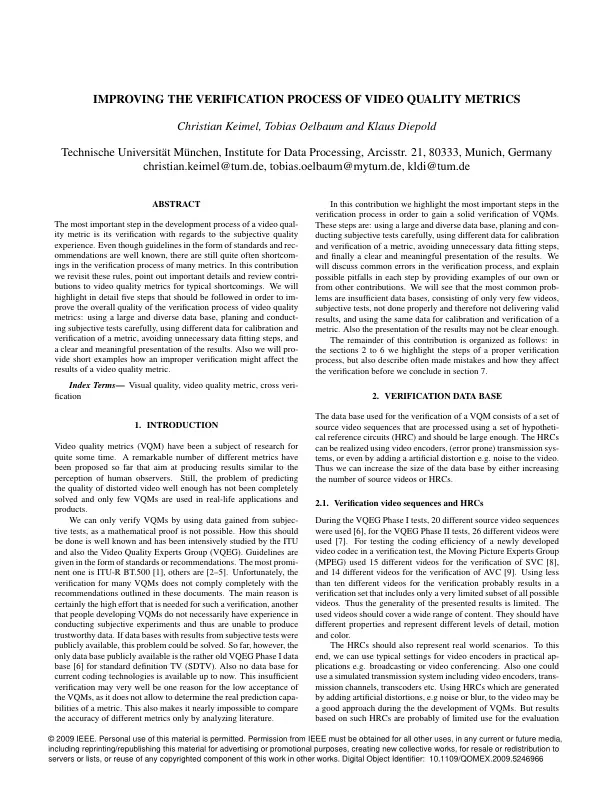 The most important step in the development process of a video quality metric is its verification with regards to the subjective quality experience. Even though guidelines in the form of standards and recommendations are well known, there are still quite often shortcomings in the verification process of many metrics. In this contribution we revisit these rules, point out important details and review contributions to video quality metrics for typical shortcomings. We will highlight in detail five steps that should be followed in order to improve the overall quality of the verification process of video quality metrics: using a large and diverse data base, planing and conducting subjective tests carefully, using different data for calibration and verification of a metric, avoiding unnecessary data fitting steps, and a clear and meaningful presentation of the results. Also we will provide short examples how an improper verification might affect the results of a video quality metric.